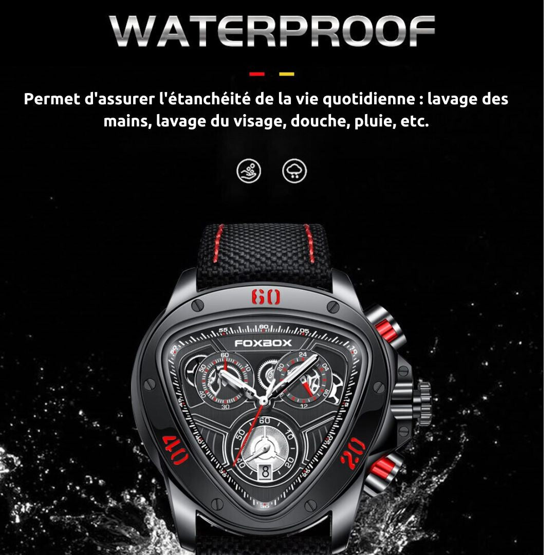 Montre Sportive à la Mode : Cadran triangulaire avec 3 sous-cadrans pour le chronomètre, l'affichage 24H et les secondes. Design unique pour vous distinguer.